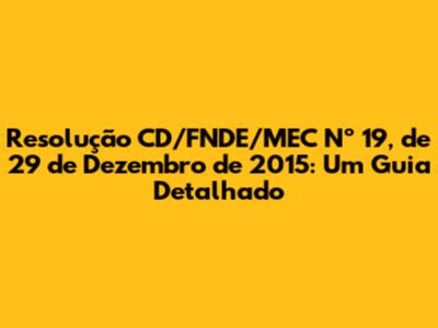 Hey pessoal! Já se perguntaram sobre a Resolução CD/FNDE/MEC Nº 19, datada de 29 de dezembro de 2015? Se a resposta for sim, vocês vieram ao lugar certo. Se a resposta for não, preparem-se para descobrir um documento crucial que moldou aspectos importantes da educação no Brasil. Esta resolução, emitida pelo Conselho Deliberativo do Fundo Nacional de Desenvolvimento da Educação (FNDE) em colaboração com o Ministério da Educação (MEC), estabelece diretrizes e procedimentos que impactam diretamente o financiamento e a execução de programas educacionais. Vamos mergulhar fundo e entender todos os detalhes relevantes dessa legislação!